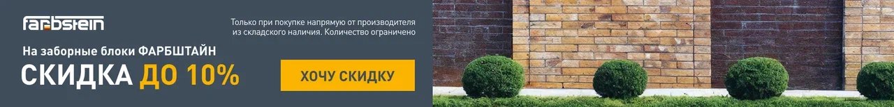 Мы подготовили приятный бонус нашим клиентам. Только сейчас у нас можно заказать красивый и надежный забор или блоки для подпорных стен со скидкой от 7% до 10% на продукцию из складского наличия. Акция действует ТОЛЬКО в Самарской области при покупке напрямую в ООО "Фарбштайн"!